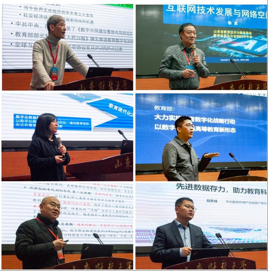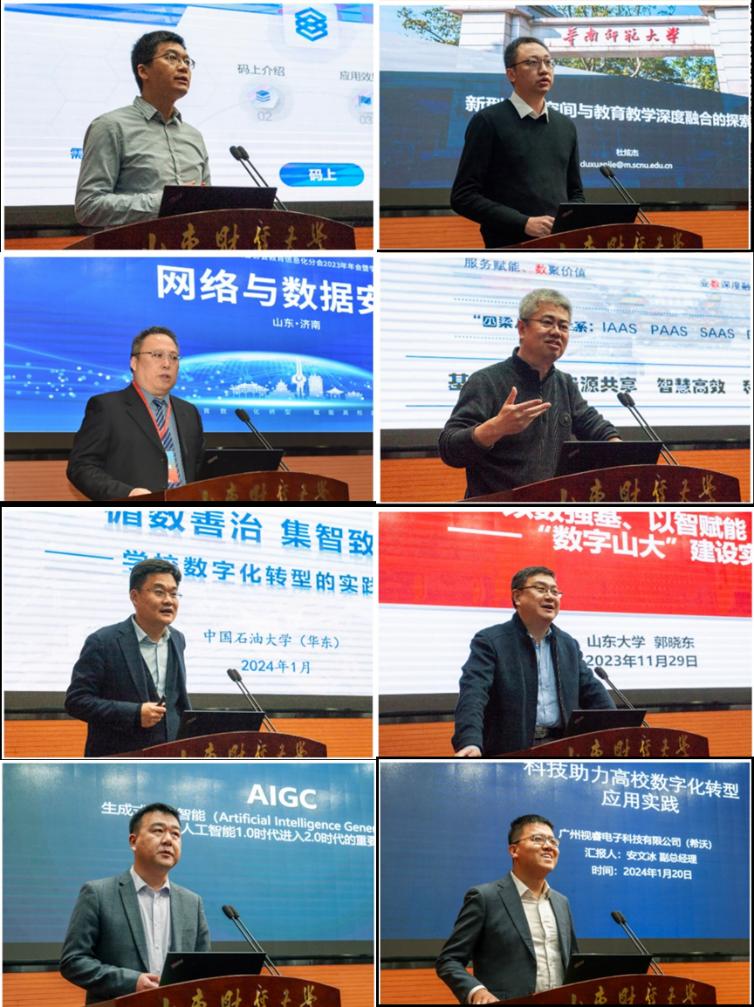 在20日下午进行的专家报告环节,北京建筑大学网络信息管理服务中心主任魏楚元、北京邮电大学计算机学院网络智能研究中心徐童老师、华南师范大学教师发展中心资源部主任兼广东省高校教育技术学会副秘书长杜炫杰、山东财经大学网络信息中心主任李德生、中国海洋大学网络与信息技术中心主任张永胜、中国石油大学(华东)信息化建设处处长郝志杰、山东大学信息化工作办公室常务副主任郭晓东几位专家、教授分别从高校应用角度围绕教育数字化转型的实践与探索方面做了高质量的报告,进行了深入探讨。