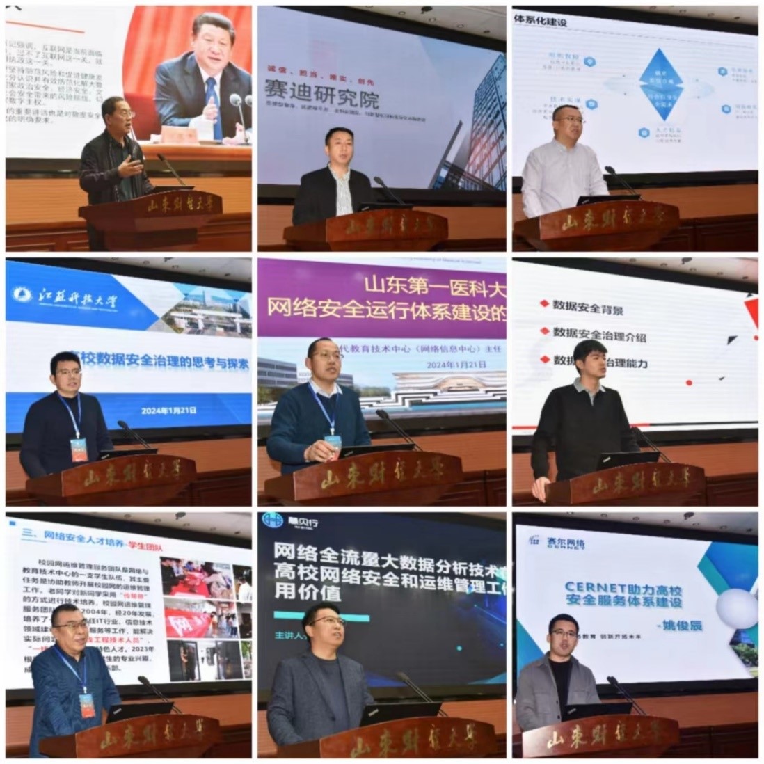 在网络与数据安全分论坛,国家计算机网络与信息安全管理中心山东分中心副主任兼总工程师赵煜、中国软件测评中心主任李安伦、北京安华金和科技有限公司解决方案部总监孟昊龙、江苏科技大学信息化建设与管理办公室副主任李涛、山东第一医科大学现代教育技术中心主任谷景亮、北京天融信网络安全技术有限公司张沛、德州学院网络与教育技术中心副主任王海涛、山东慧贝行信息技术有限公司技术总监陈从刚、赛尔山东分公司安全总监姚俊辰等专家学者围绕网络和数据安全的政策解读、合规建设实施要点、实践及案例等方面进行了深入探讨和交流。