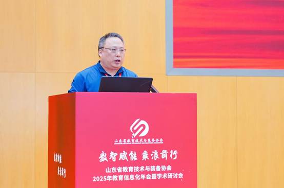 2025年12月27日至28日,为全面贯彻党的二十届四中全会精神,深入落实《教育强国建设规划纲要(2024—2035年)》,推进国家教育数字化战略行动,以“数智赋能高等教育高质量发展”为主题的山东省教育技术与装备协会2025年教育信息化年会暨学术研讨会在济南成功举行。大会由省教育厅指导、省教育技术与装备协会主办,信息化分会、学术委员会承办,近400位政校企嘉宾齐聚现场,线上超7万人次同步观看直播,共话教育数字化转型新路径。