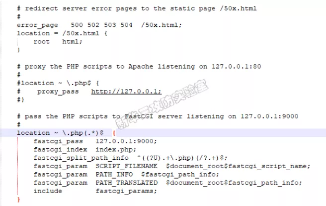 ① 由于nginx.conf中存在如下默认配置,使得nginx在解析后缀为.php的文件时,会转交给fastcgi处理。