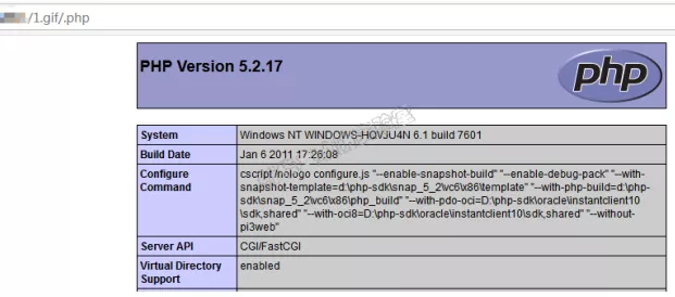 ② 配置文件php.ini中存在参数cgi.fix_pathinfo,默认值为1,主要用于修复路径,若当前路径不存在则会解析上层路径的文件。因此如果构造访问地址为http://ip/path/1.jpg/x.php(其中1.jpg是上传的包含php代码的图片文件,x.php可以是服务器中任意一个不存在的php文件),则会导致fastcgi处理的文件就变成/1.jpg。