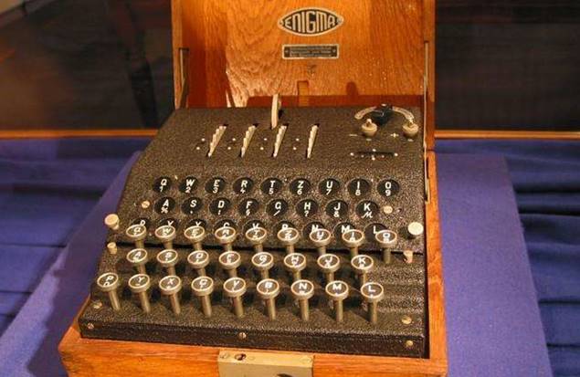 恩尼格玛是德国在二战时期使用的密码机,键盘一共有26个键,键盘排列和广为使用的计算机键盘基本一样,只不过为了使通讯尽量地短和难以破译,空格、数字和标点符号都被取消,而只有字母键。键盘上方是标示了同样字母的26个小灯泡,当键盘上的某个键被按下时,和这个字母被加密后的密文字母所对应的小灯泡就亮了起来。这种密码是一种复式替换密码,通常的概率统计破解难以发挥作用。
