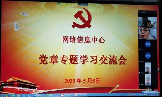 为深入学习贯彻党的二十大精神,进一步推动学习贯彻习近平新时代中国特色社会主义思想主题教育走深走实,提升党员干部学习党章、遵守党章、贯彻党章、维护党章的意识和自觉,5月5日,网络信息中心以腾讯会议的形式,召开线上党章专题学习交流会。会上,全体党员集体学习了习近平总书记发表的《认真学习党章,严格遵守党章》的文章,并围绕党章学习,结合工作实践,畅谈学习感想,分享学习心得。