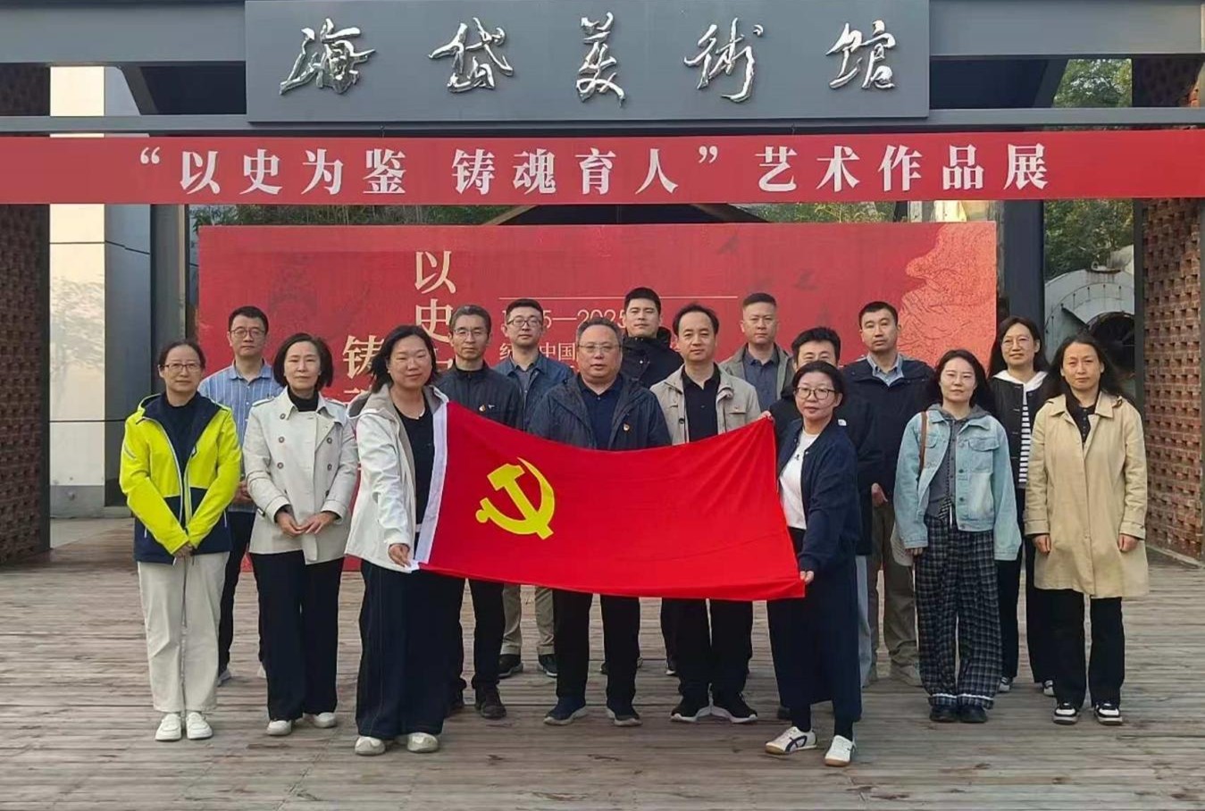 为纪念中国人民抗日战争暨世界反法西斯战争胜利80周年,深入推进爱国主义教育和廉洁教育,16日下午,网信办党支部组织全体教职工参观我校“以史为鉴 铸魂育人”抗战胜利80周年艺术作品展,开展主题党日活动。