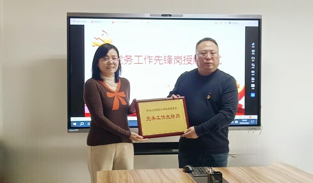 机关党委书记付亚向网信办党支部授予“党务工作先锋岗”牌匾,支部书记李德生代表支部接受牌匾。